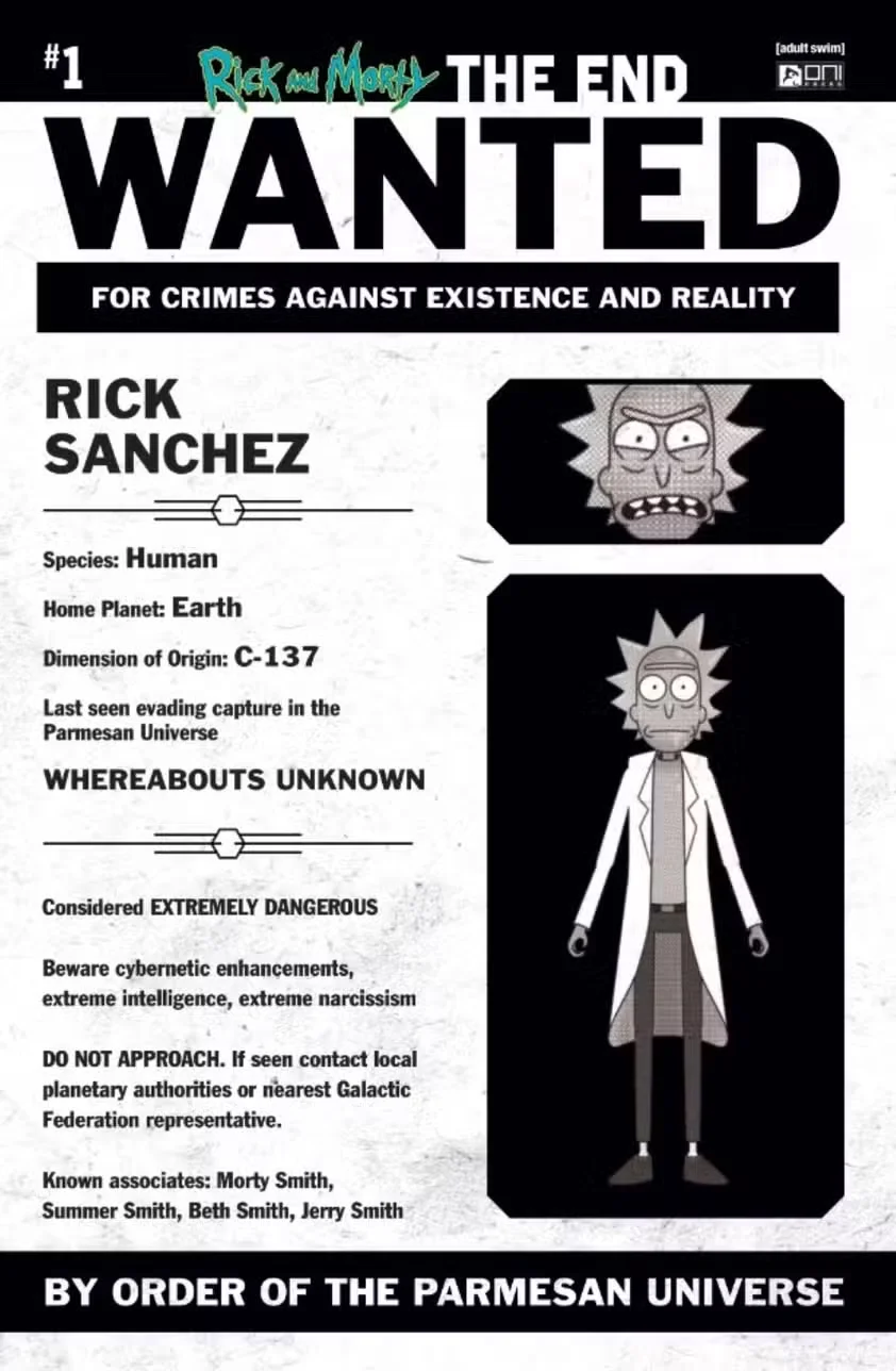 Фанаты комиксов Oni Press знают, что герои увязли в кроссовере Rick and Morty Versus the Universe, где за Риком охотятся ожившие вселенные мультивселенной. The End продолжает этот хаос: Рик Санчез удирает, пытаясь выжить против невероятных шансов. Согласно синопсису первого выпуска, за Риком гонятся «каждое правительство, армия, пираты, мафия, охотники за головами, поручители, религиозные секты, театральные труппы, цирковые клоуны и вымирающие виды». Морти Смит — единственный, у кого есть реальный шанс поймать деда, но это может всё изменить. В погоне участвует и Космическая Бет Смит. Куда приведёт эта серия? И главное — будет ли у «Рика и Морти» продолжение у Oni Press, или этот взрывной сюжет станет их последней выходкой?